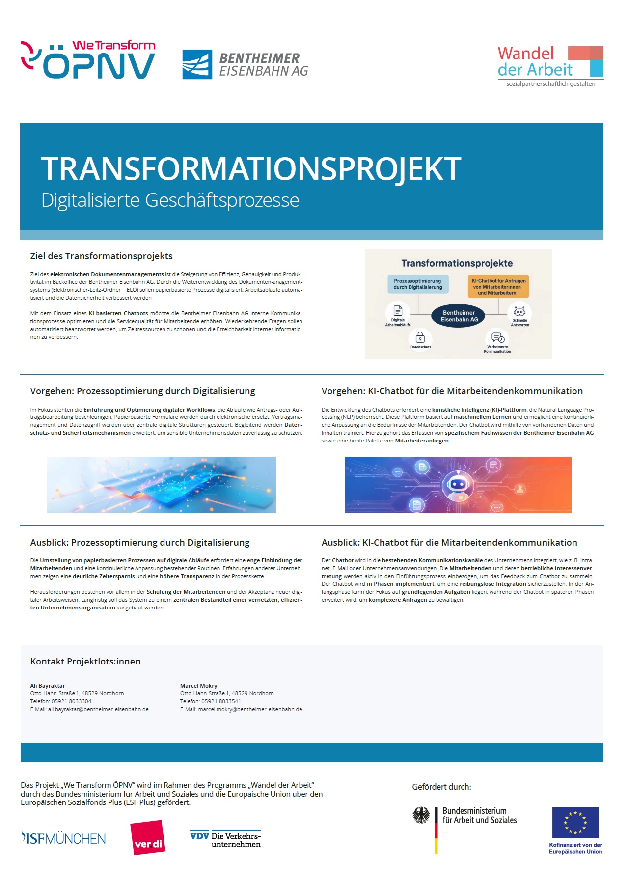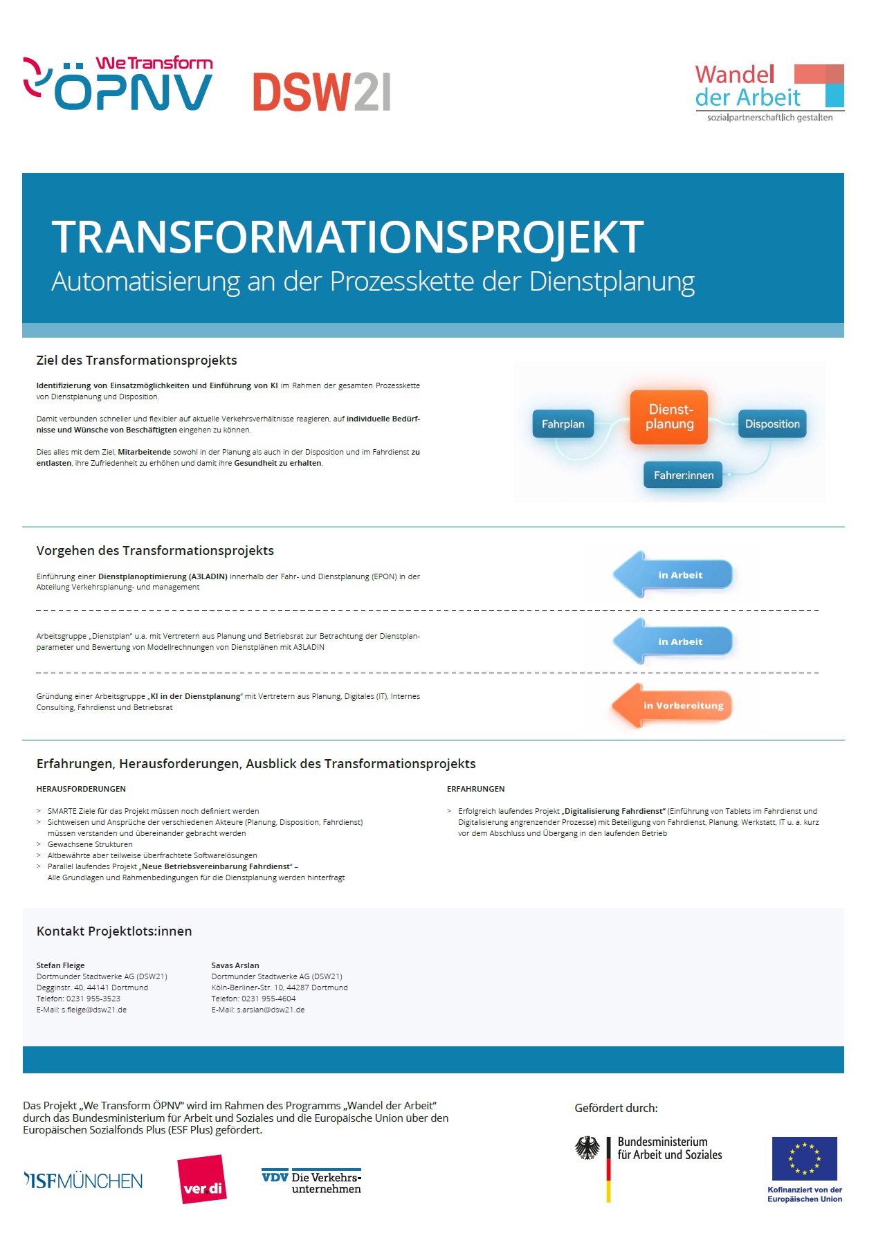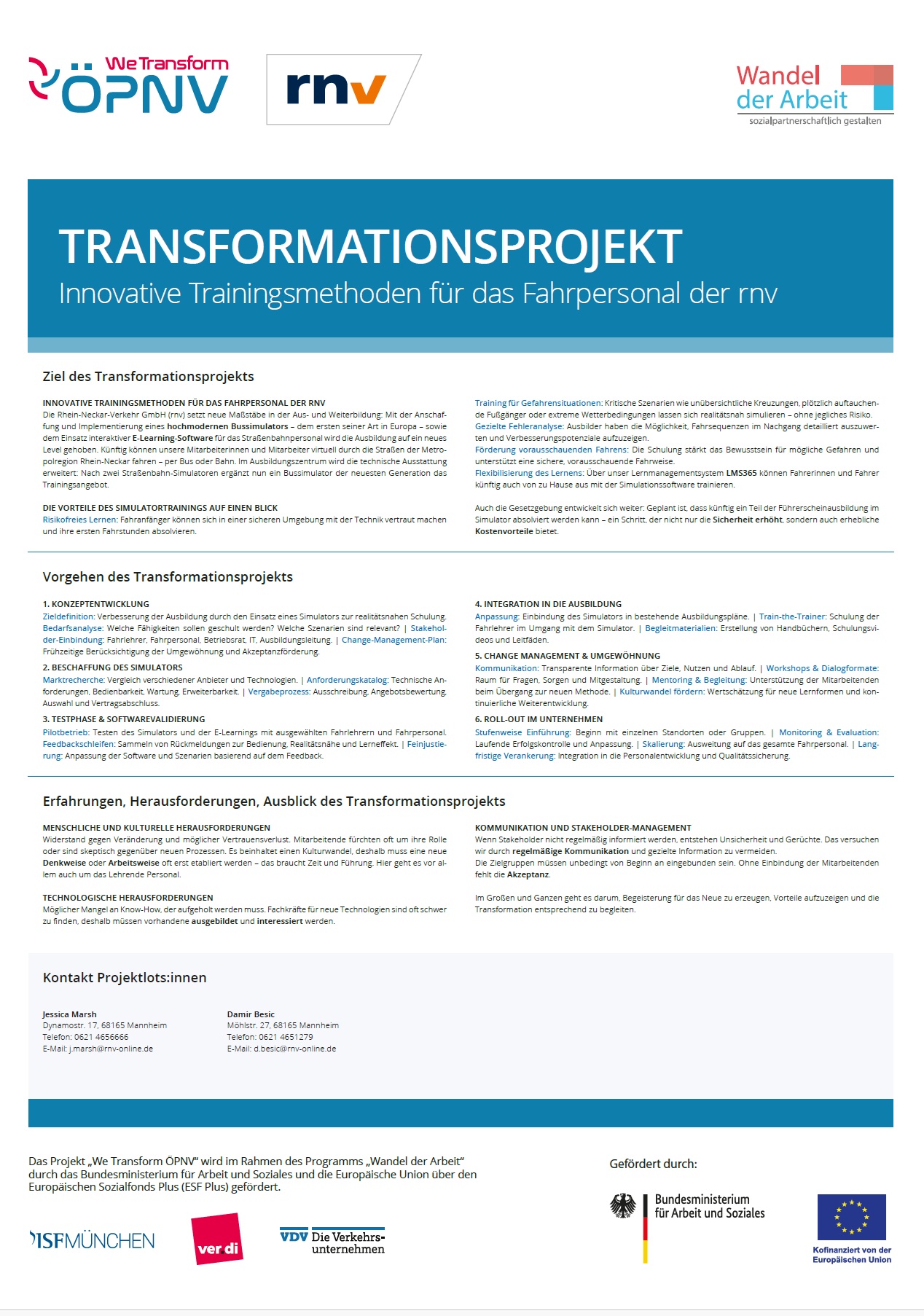 Das Projekt „We-Transform-ÖPNV“ wird im Rahmen des Programms „Den Wandel der Arbeit sozialpartnerschaftlich gestalten“ durch das Bundesministerium für Arbeit und Soziales und die Europäische Union über den Europäischen Sozialfonds Plus (ESF Plus) gefördert.